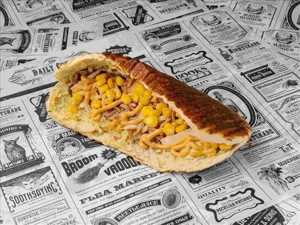 . Мясо ,пекинка ,свежий помидор ,кукуруза,халапеньо ,соус гриль,фирменный белый соус